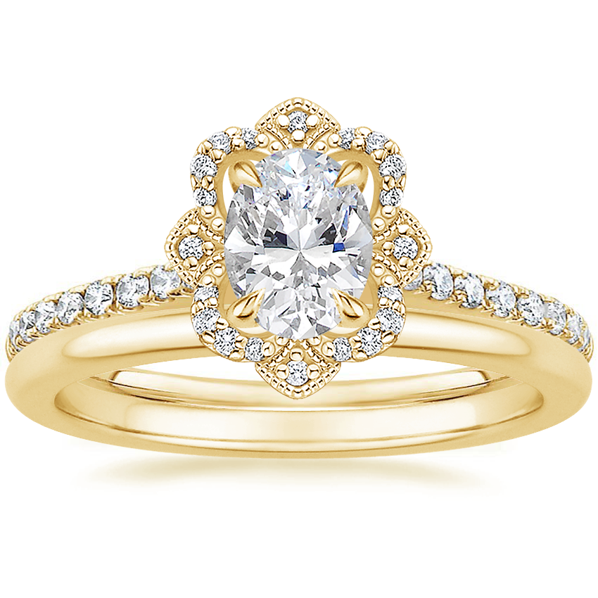18K Yellow Gold Reina Diamond Ring with Petite Comfort Fit Wedding Ring