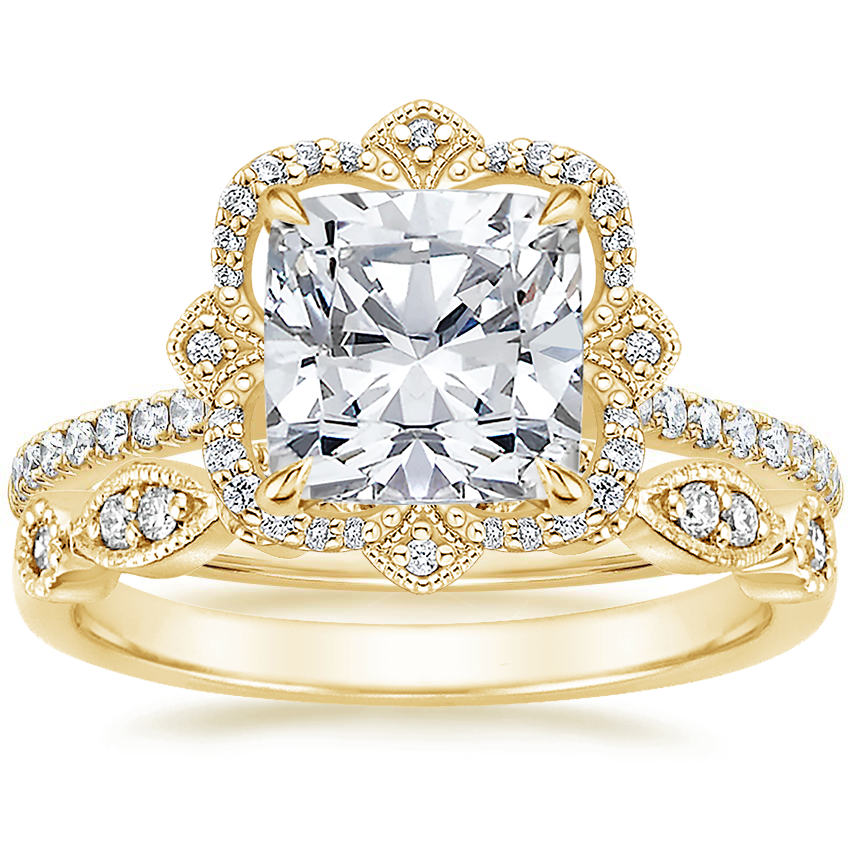 I knew I wanted a rose gold ring in a vintage-inspired setting, and the Reina Halo is absolute perfection! I purchased my ring entirely online (not from a showroom) and I got mine set with a 7mm cushion-cut premium moissanite. While thin and dainty, the pavé band is definitely more durable than I thought it would be. It is so comfortable to wear, and while the gem sits a little higher than I would prefer, I'm sure this is to comfortably accommodate my future wedding band. Overall I had a fantastic experience with customer service, ordering online, and receiving my purchase. I highly recommend Brilliant Earth, their rose gold options, their moissanite gemstones, and the Reina Halo setting!