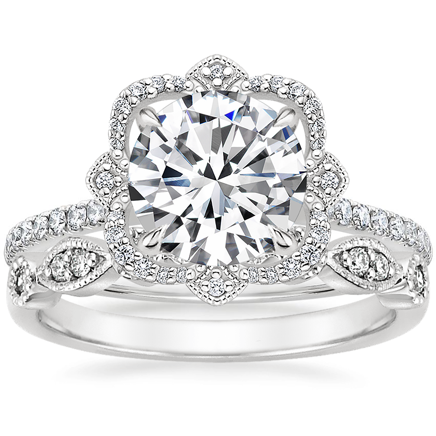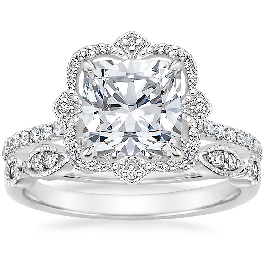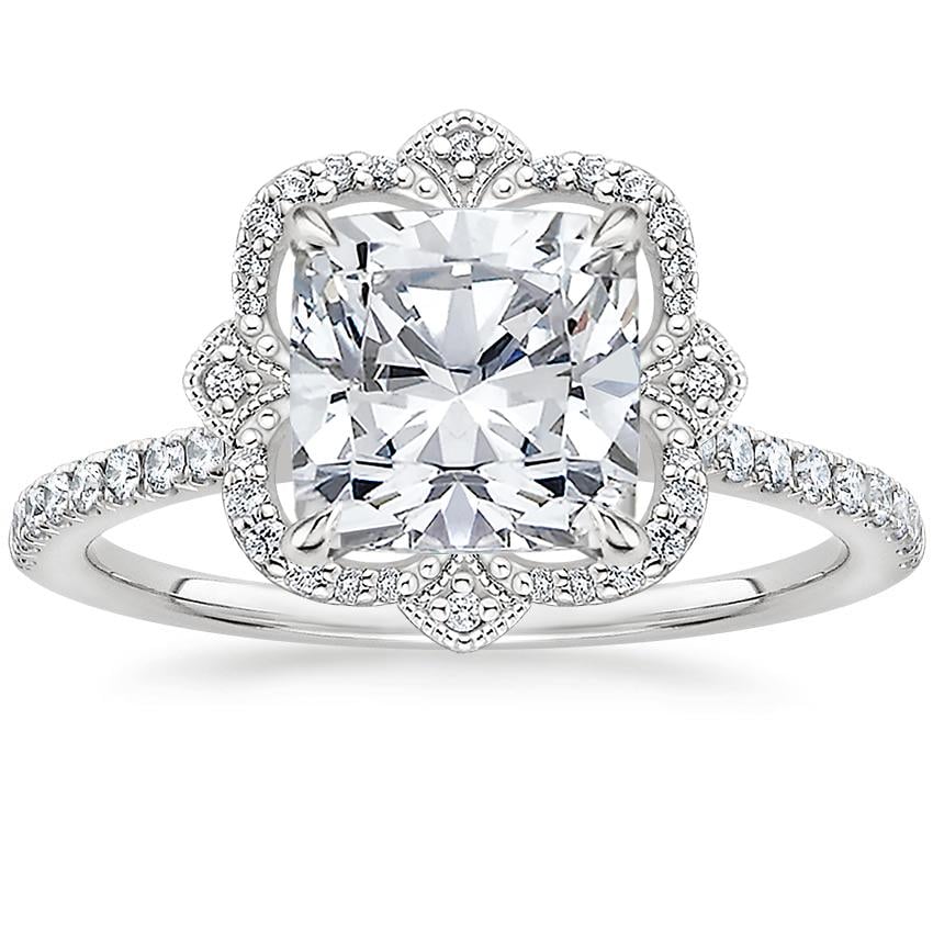I knew I wanted a rose gold ring in a vintage-inspired setting, and the Reina Halo is absolute perfection! I purchased my ring entirely online (not from a showroom) and I got mine set with a 7mm cushion-cut premium moissanite. While thin and dainty, the pavé band is definitely more durable than I thought it would be. It is so comfortable to wear, and while the gem sits a little higher than I would prefer, I'm sure this is to comfortably accommodate my future wedding band. Overall I had a fantastic experience with customer service, ordering online, and receiving my purchase. I highly recommend Brilliant Earth, their rose gold options, their moissanite gemstones, and the Reina Halo setting!