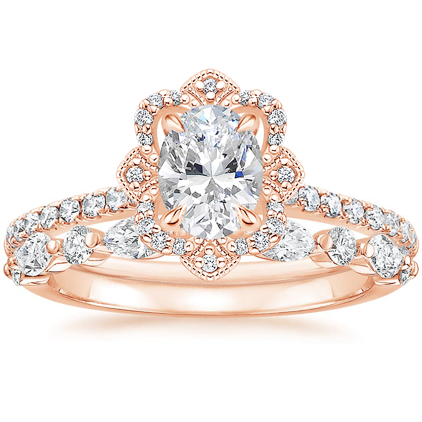 14K Rose Gold Reina Diamond Ring with Versailles Diamond Ring (3/8 ct. tw.)