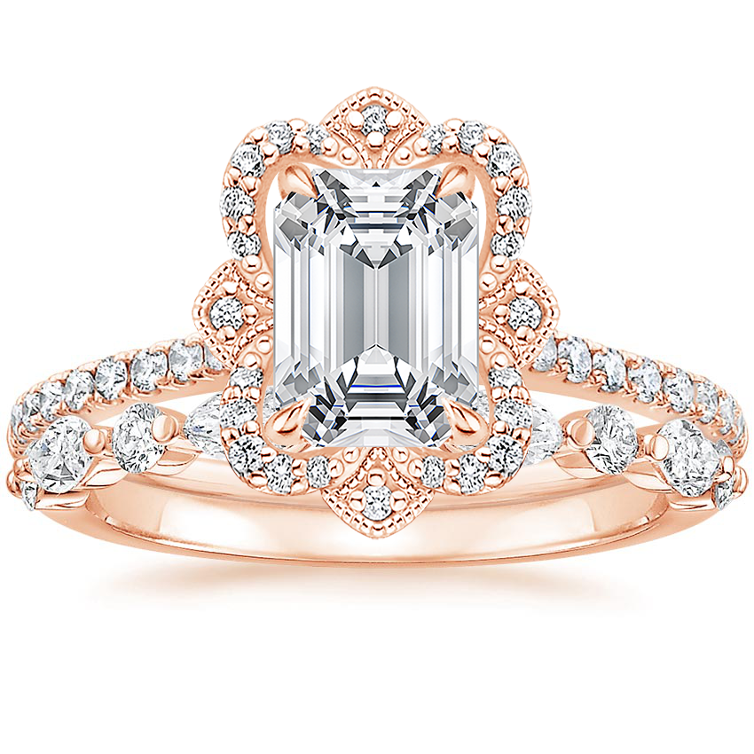 I knew I wanted a rose gold ring in a vintage-inspired setting, and the Reina Halo is absolute perfection! I purchased my ring entirely online (not from a showroom) and I got mine set with a 7mm cushion-cut premium moissanite. While thin and dainty, the pavé band is definitely more durable than I thought it would be. It is so comfortable to wear, and while the gem sits a little higher than I would prefer, I'm sure this is to comfortably accommodate my future wedding band. Overall I had a fantastic experience with customer service, ordering online, and receiving my purchase. I highly recommend Brilliant Earth, their rose gold options, their moissanite gemstones, and the Reina Halo setting!