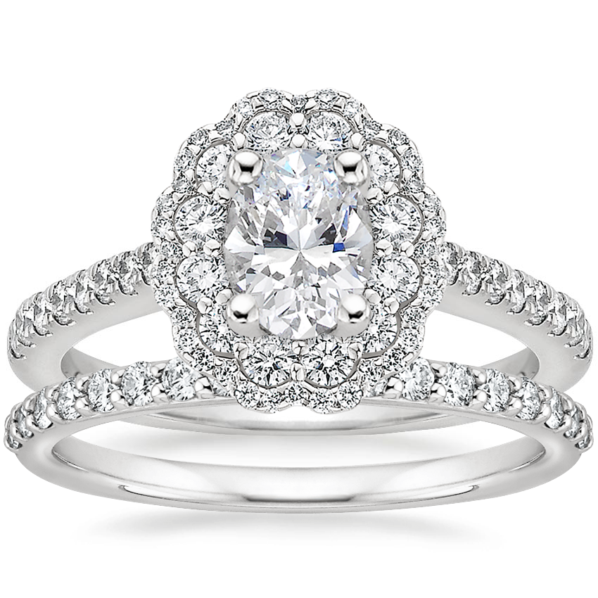 Platinum Rosa Diamond Ring with Petite Shared Prong Diamond Ring (1/4 ct. tw.)