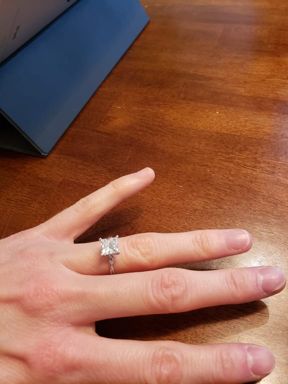 My fiance loved it. She said it was exactly what she envisioned her engagment ring to be. I did think the band was going to be bigger, but regardless, the stone is amazing and shines really bright! Great packaging as well . ...Read More