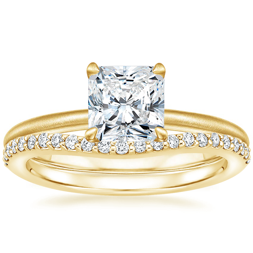 18K Yellow Gold Satin Petite Elodie Ring with Curved Diamond Ring (1/6 ct. tw.)