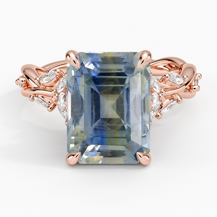 14K Rose Gold Secret Garden Diamond Ring (1/2 ct. tw.) with 13.1x10.9mm Bi-Color Emerald Sapphire