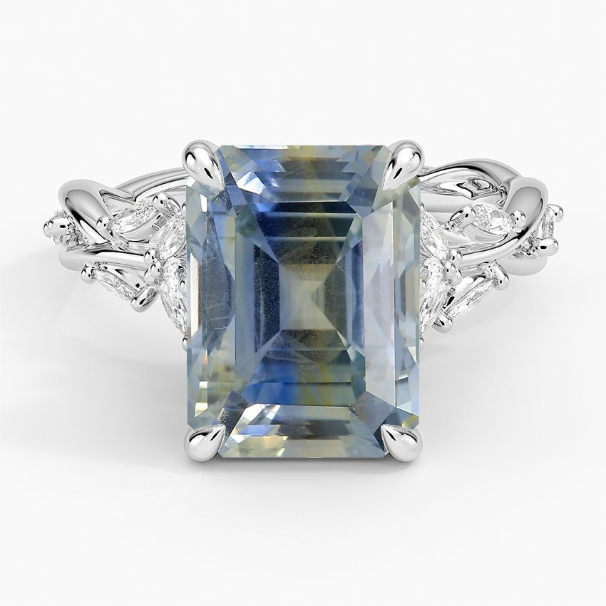 18K White Gold Secret Garden Diamond Ring (1/2 ct. tw.) with 13.1x10.9mm Bi-Color Emerald Sapphire