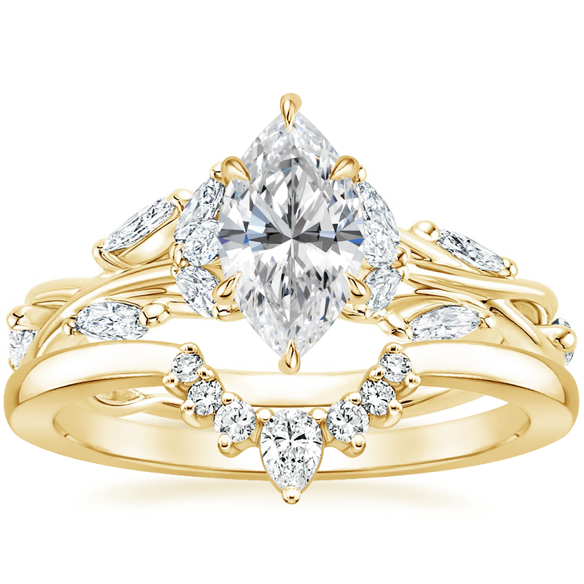 18K Yellow Gold Secret Garden Lab Diamond Ring (1/2 ct. tw.) with Lunette Diamond Ring with 0.75 Carat Marquise Lab Grown Diamond