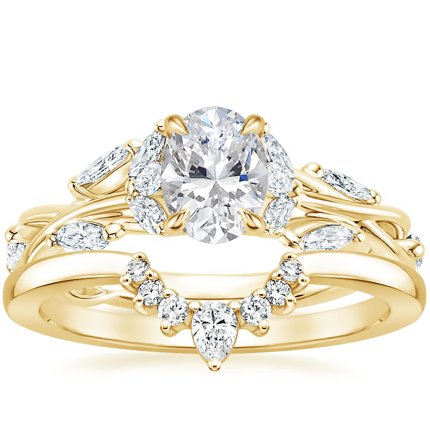 Staying away from traditional, this design style mirrors something from a much more whimsical, enchanting place. Woven vines of gold, all that's needed was the perfect stone centerpiece. Beautiful