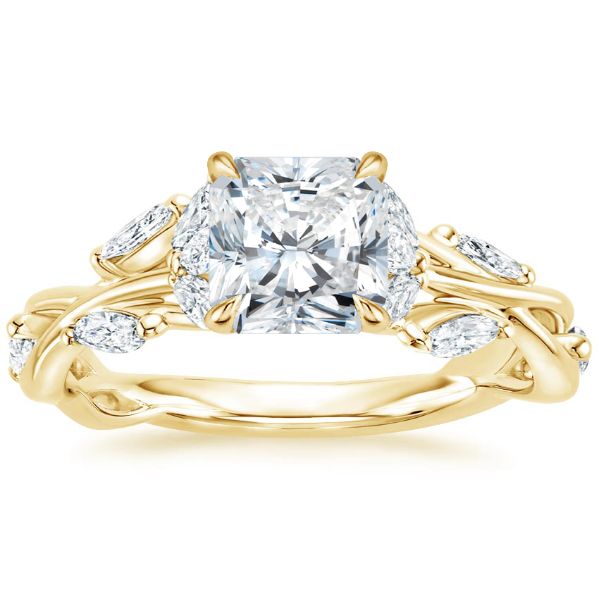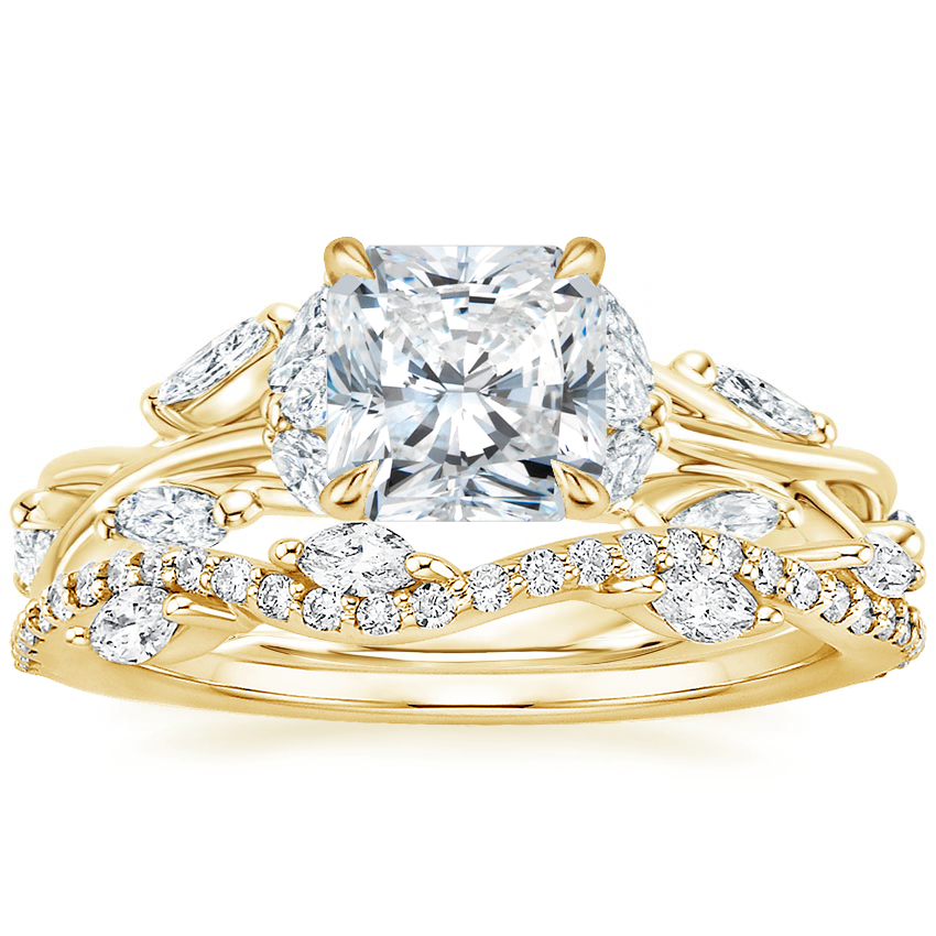 18K Yellow Gold Secret Garden Lab Diamond Ring (1/2 ct. tw.) with Luxe Winding Willow Diamond Ring (1/4 ct. tw.) with 0.75 Carat Radiant Lab Grown Diamond