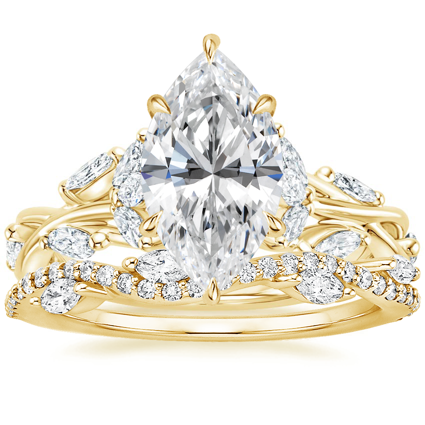 18K Yellow Gold Secret Garden Diamond Ring (1/2 ct. tw.) with Luxe Winding Willow Diamond Ring (1/4 ct. tw.)
