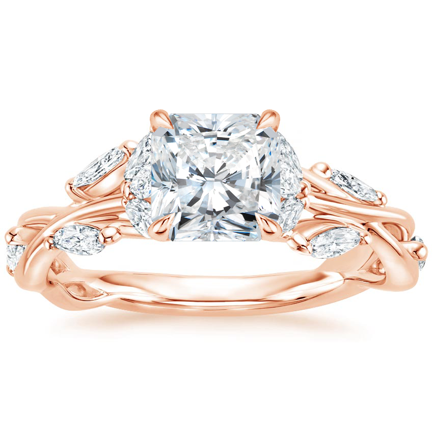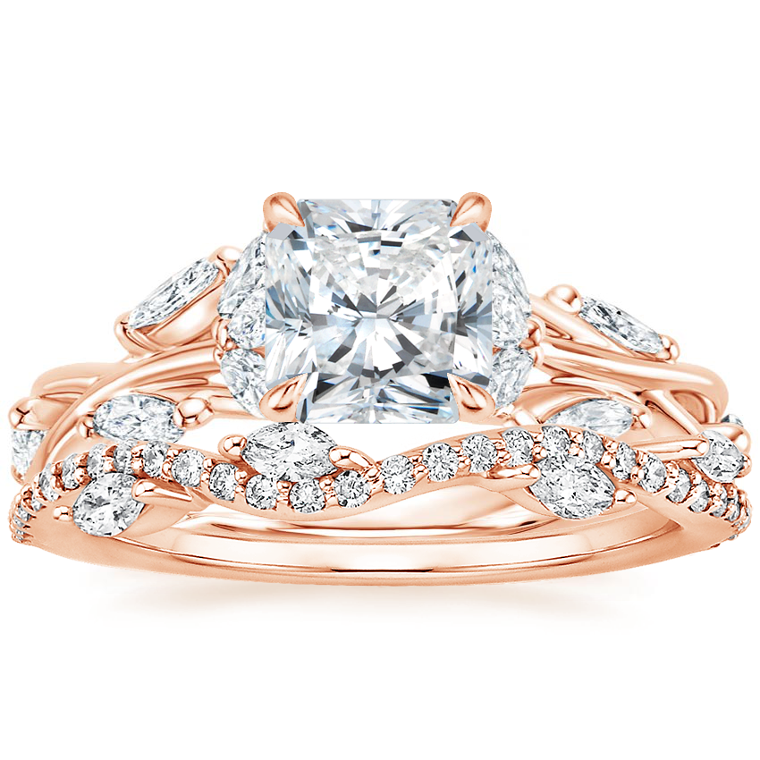 14K Rose Gold Secret Garden Lab Diamond Ring (1/2 ct. tw.) with Luxe Winding Willow Diamond Ring (1/4 ct. tw.) with 0.75 Carat Radiant Lab Grown Diamond