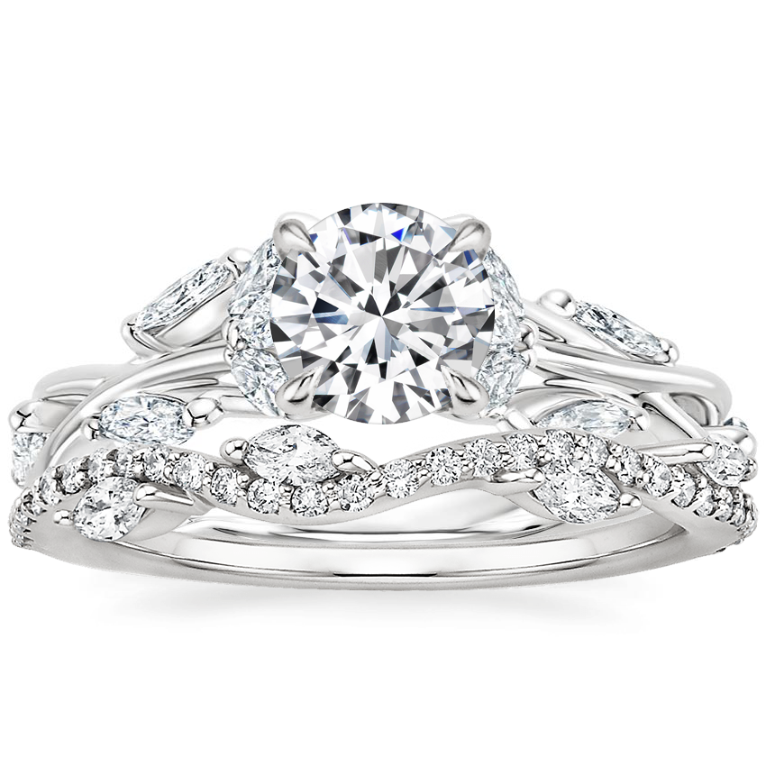 18K White Gold Secret Garden Lab Diamond Ring (1/2 ct. tw.) with Luxe Winding Willow Diamond Ring (1/4 ct. tw.) with 0.5 Carat Round Lab Grown Diamond