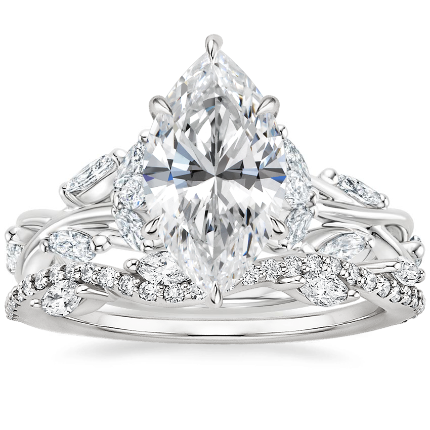 Secret Garden Diamond Ring (1/2 ct. tw.) with Luxe Winding Willow Diamond Ring (1/4 ct. tw.) in 18K White Gold