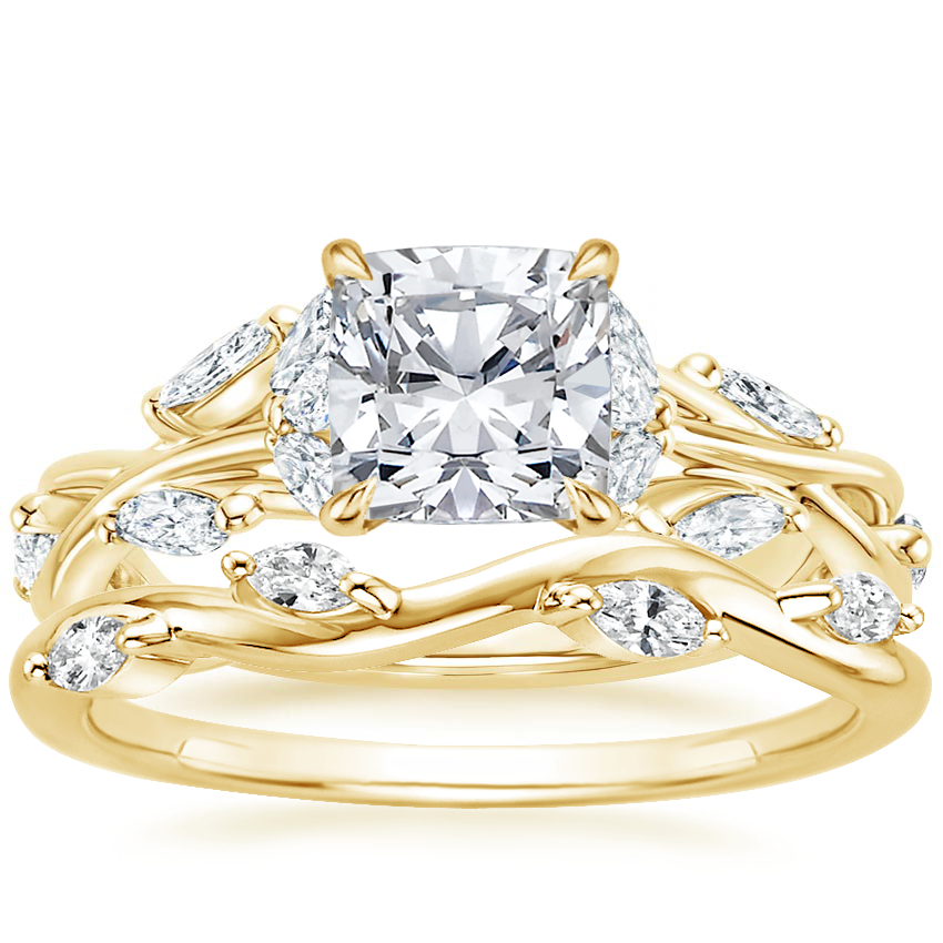 18K Yellow Gold Secret Garden Diamond Ring (1/2 ct. tw.) with Winding Willow Diamond Ring (1/8 ct. tw.)