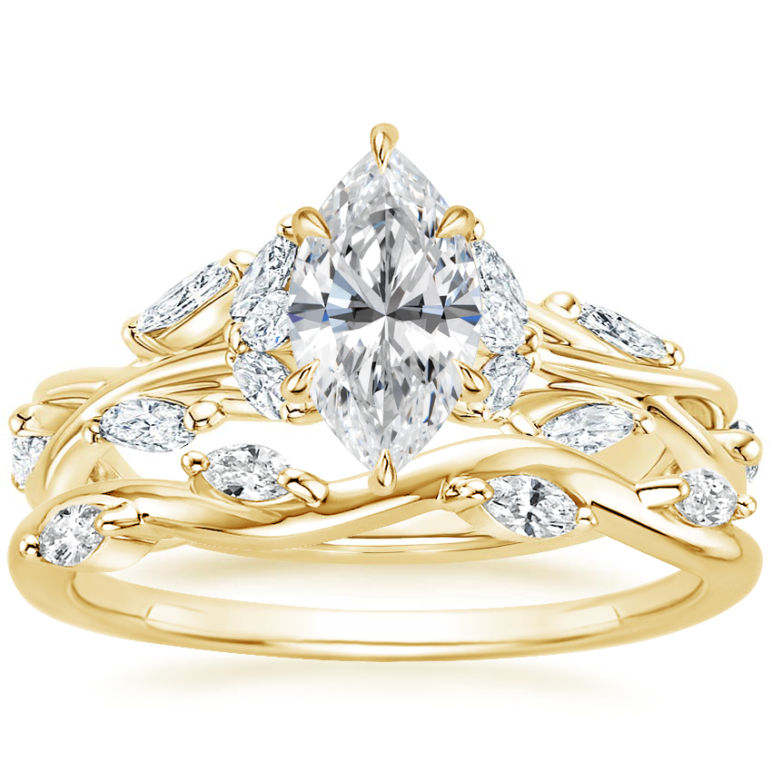 18K Yellow Gold Secret Garden Diamond Ring (1/2 ct. tw.) with Winding Willow Diamond Ring (1/8 ct. tw.) with 0.5 Carat Marquise Diamond