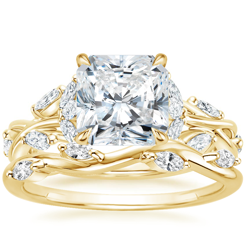 18K Yellow Gold Secret Garden Diamond Ring (1/2 ct. tw.) with Winding Willow Diamond Ring (1/8 ct. tw.)