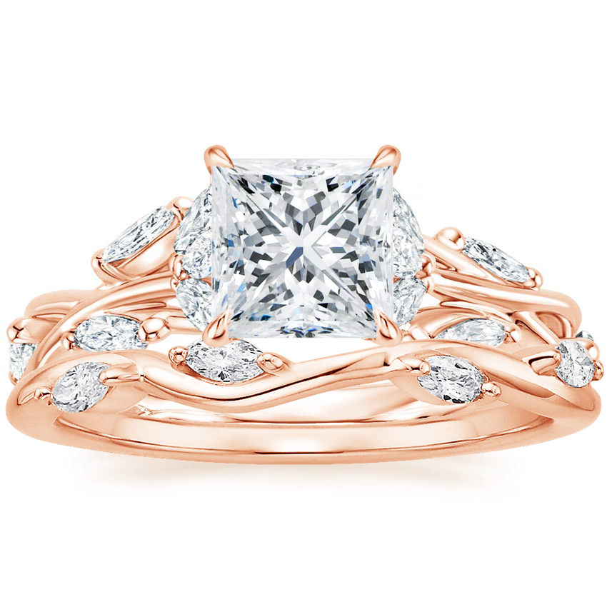 14K Rose Gold Secret Garden Diamond Ring (1/2 ct. tw.) with Winding Willow Diamond Ring (1/8 ct. tw.)