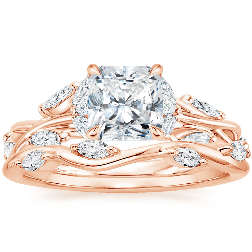 14K Rose Gold Secret Garden Diamond Ring (1/2 ct. tw.) with Winding Willow Diamond Ring (1/8 ct. tw.)
