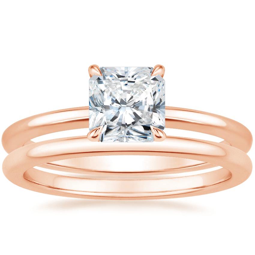14K Rose Gold Secret Halo Diamond Ring with Petite Comfort Fit Wedding Ring