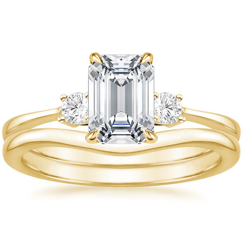 18K Yellow Gold Selene Diamond Ring (1/10 ct. tw.) with Petite Curved Wedding Ring