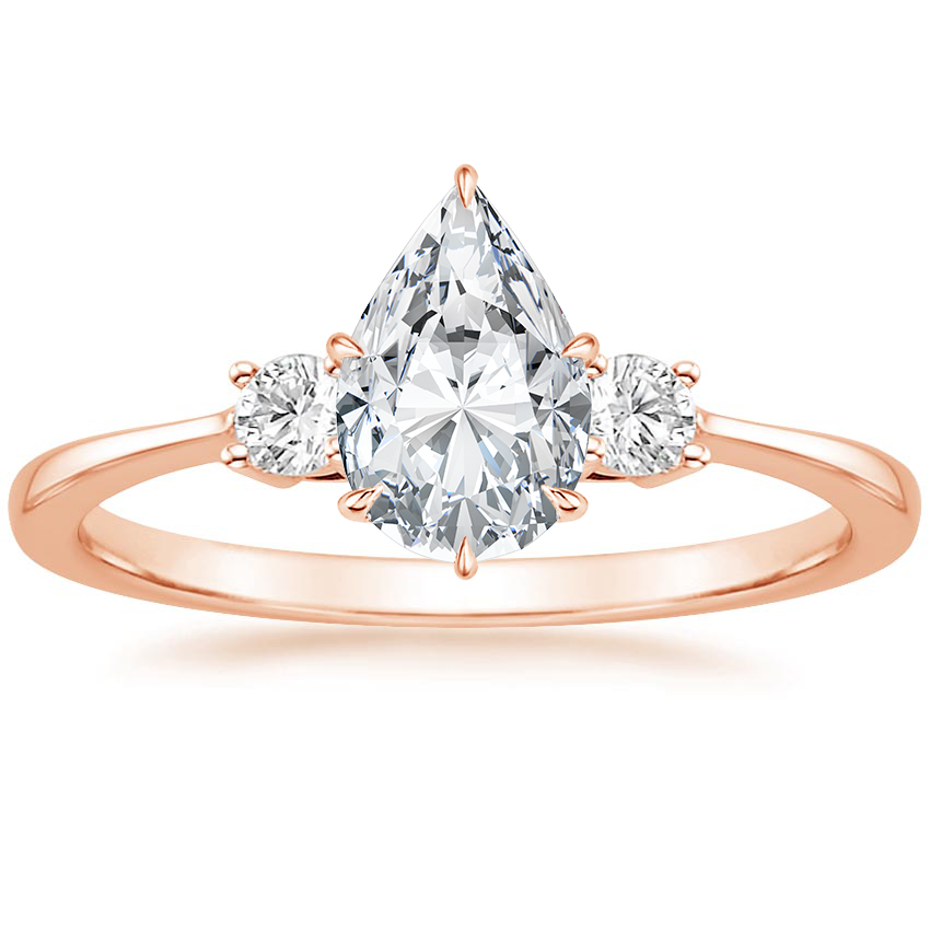 14K Rose Gold Selene Diamond Ring (1/10 ct. tw.) with Petite Curved Wedding Ring with 0.3 Carat Pear Diamond