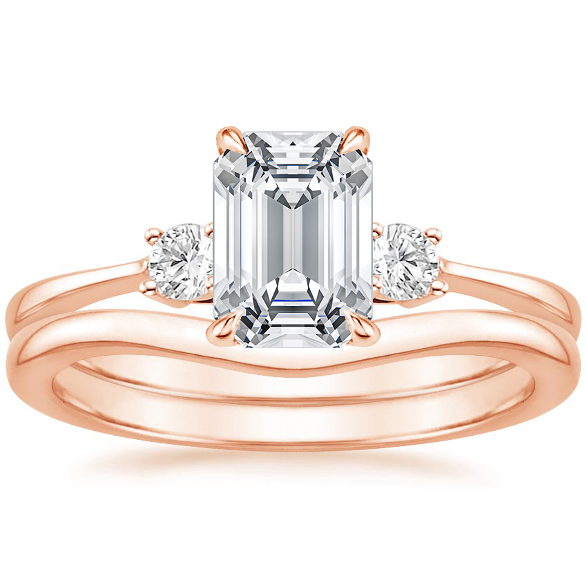 14K Rose Gold Selene Diamond Ring (1/10 ct. tw.) with Petite Curved Wedding Ring