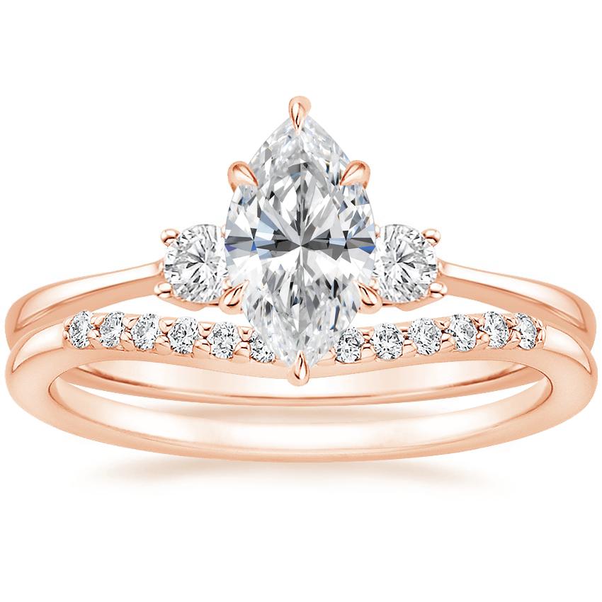 14K Rose Gold Selene Lab Diamond Ring with Petite Curved Diamond Ring with 2.02 Carat Marquise Lab Grown Diamond