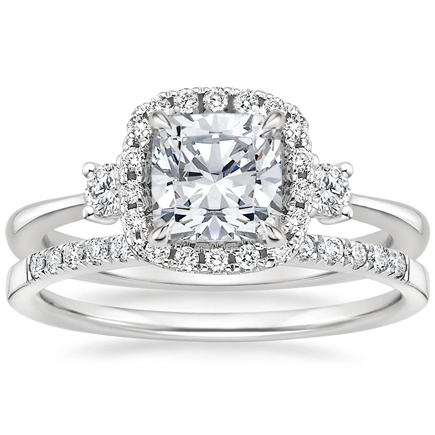 18K White Gold Selene Halo Diamond Ring (1/4 ct. tw.) with Petite Ballad Diamond Ring (1/10 ct. tw.)