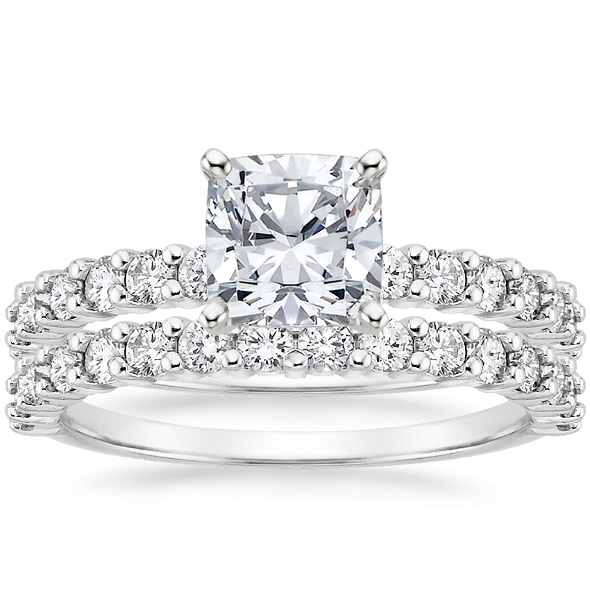 This classic bridal set graces the finger with brilliant diamonds set in beautifully sculpted shared-prongs, enhancing the beauty of the center gem. ... Read More