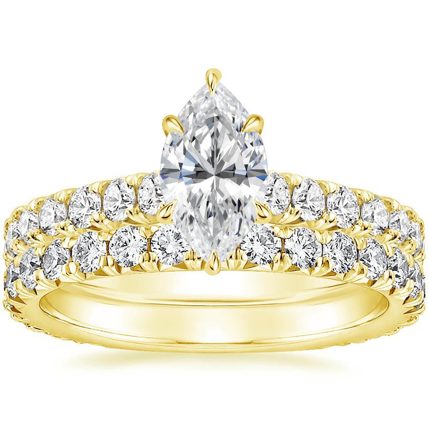 18K Yellow Gold Sienna Lab Diamond Ring (2/5 ct. tw.) with Luxe Sienna Diamond Ring (5/8 ct. tw.) with 0.35 Carat Marquise Lab Grown Diamond