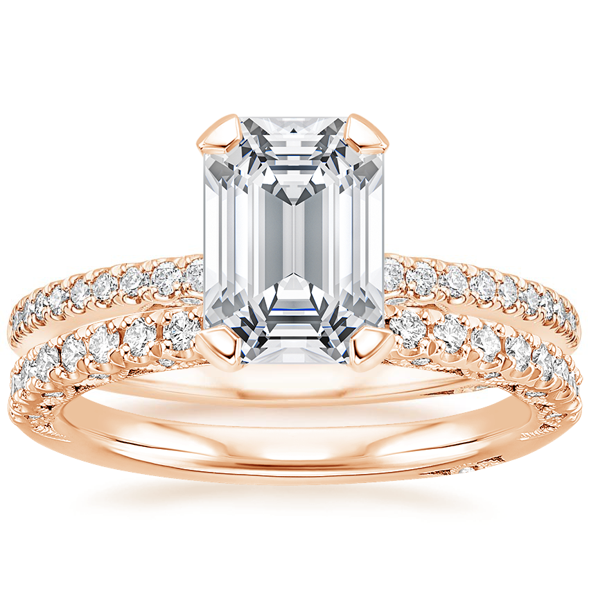 18K Rose Gold Simply Tacori Classic Diamond Ring (1/5 ct. tw.) with Tacori Petite Crescent Diamond Ring (1/4 ct. tw.)