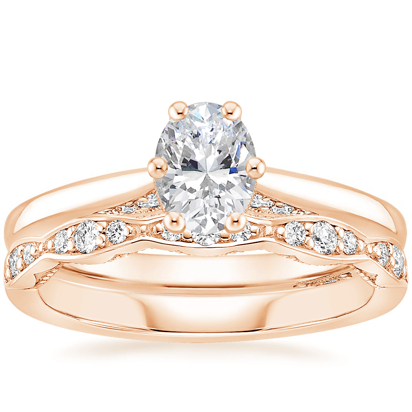 18K Rose Gold Simply Tacori Crown Diamond Ring with Tacori Sculpted Crescent Diamond Ring (1/6 ct. tw.)
