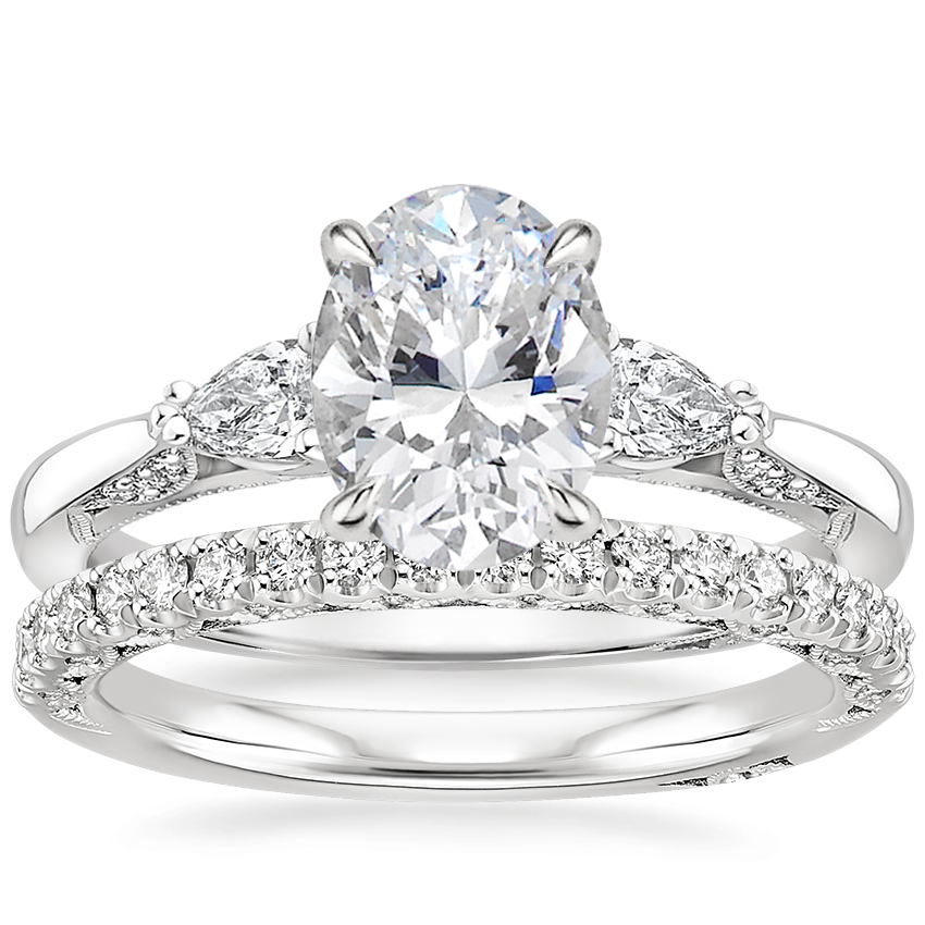 18K White Gold Simply Tacori Three Stone Diamond Ring (1/3 ct. tw.) with Tacori Petite Crescent Diamond Ring (1/4 ct. tw.)