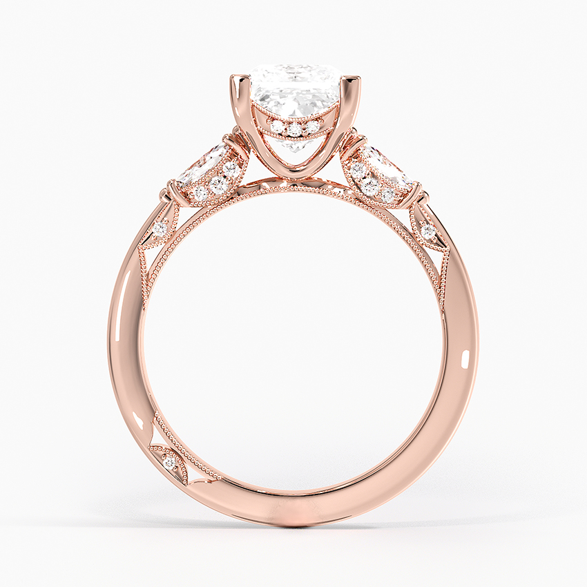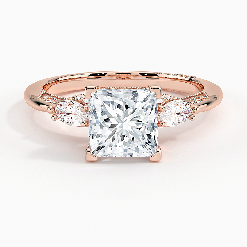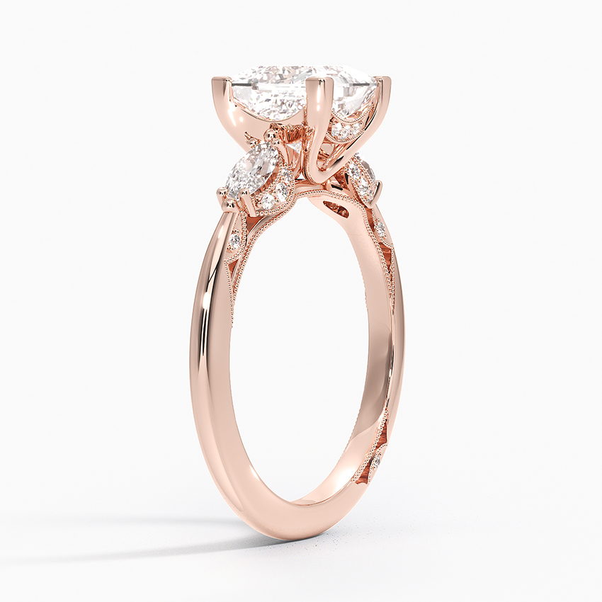 18K Rose Gold Simply Tacori Three Stone Marquise Diamond Ring with 1.5 Carat Princess Diamond
