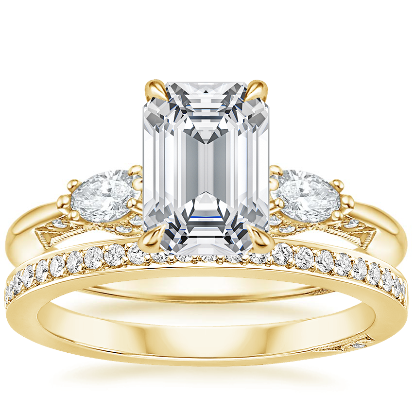 18K Yellow Gold Simply Tacori Three Stone Marquise Diamond Ring with Tacori Dantela Diamond Ring (1/8 ct. tw.)