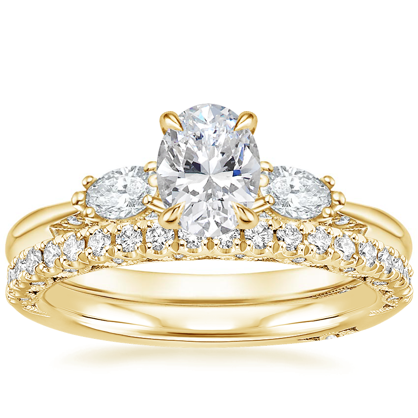 18K Yellow Gold Simply Tacori Three Stone Marquise Diamond Ring with Tacori Petite Crescent Diamond Ring (1/4 ct. tw.)