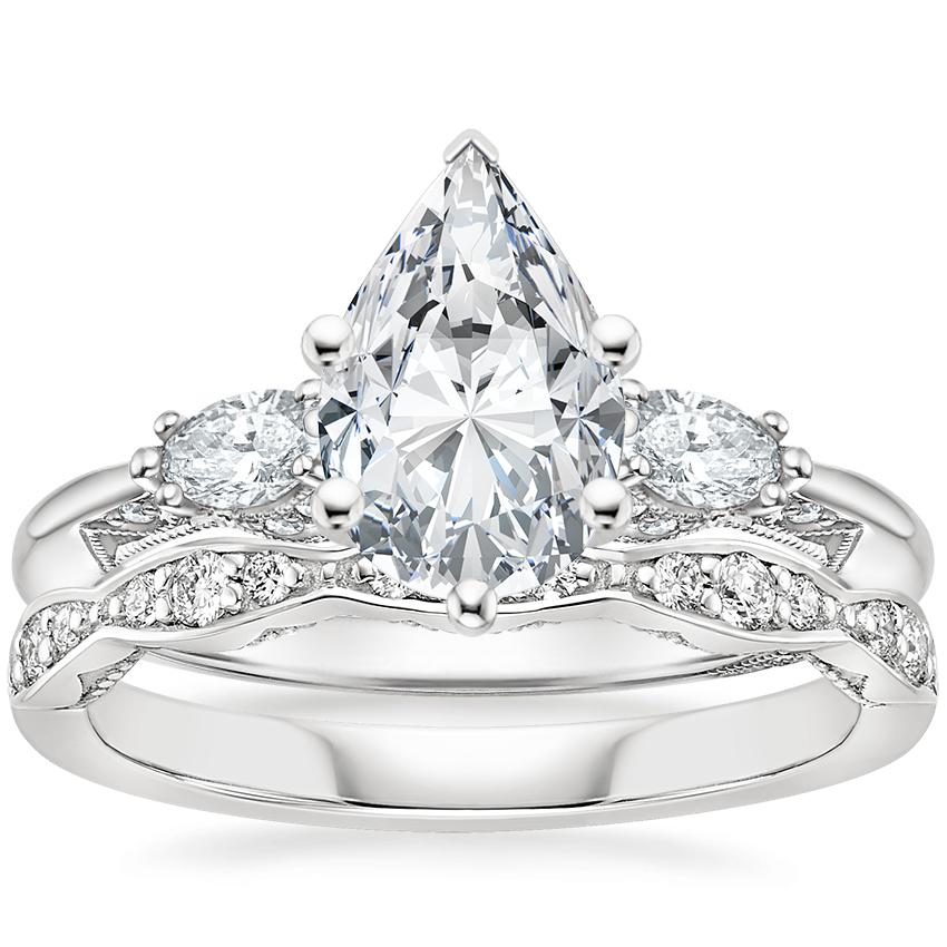 18K White Gold Simply Tacori Three Stone Marquise Diamond Ring with Tacori Sculpted Crescent Diamond Ring (1/6 ct. tw.)