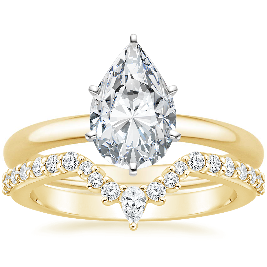 18K Yellow Gold Six-Prong 2mm Comfort Fit Ring with Luxe Lunette Diamond Ring (1/3 ct. tw.) with 1.23 Carat Pear Lab Grown Diamond