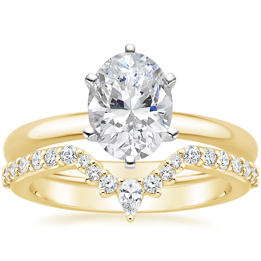18K Yellow Gold Six-Prong 2mm Comfort Fit Ring with Luxe Lunette Diamond Ring (1/3 ct. tw.)