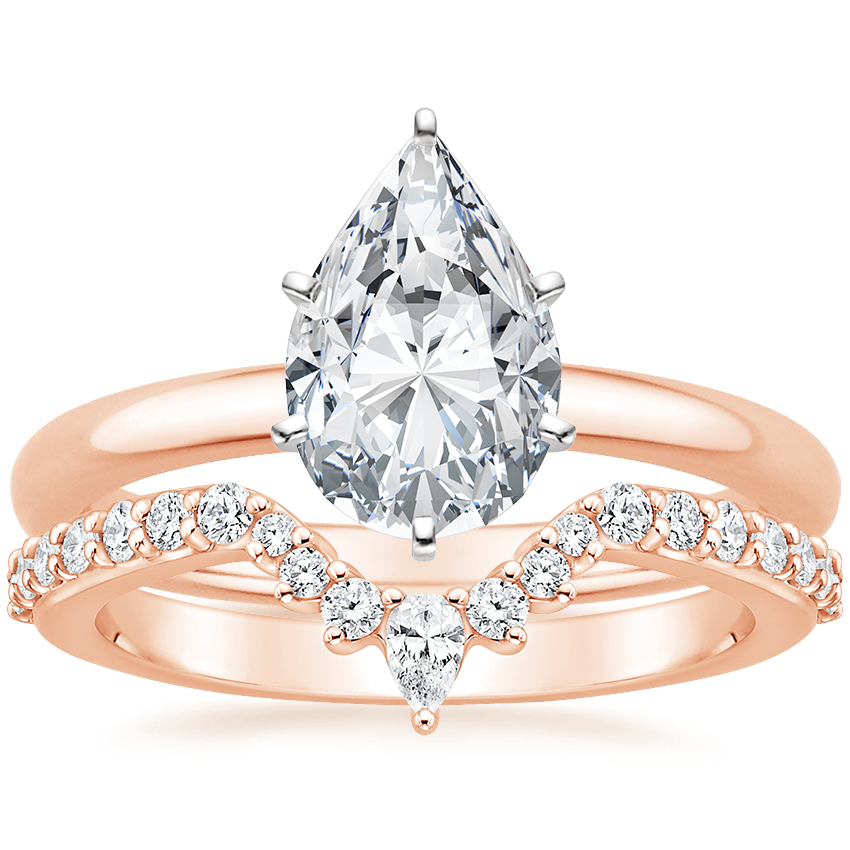 14K Rose Gold Six-Prong 2mm Comfort Fit Ring with Luxe Lunette Diamond Ring (1/3 ct. tw.) with 1.23 Carat Pear Lab Grown Diamond