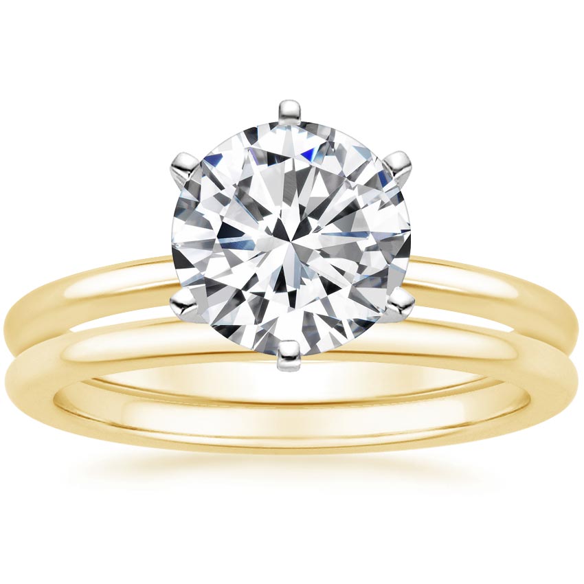 18K Yellow Gold Six-Prong Petite Comfort Fit Bridal Set with 1.11 Carat Round Lab Grown Diamond