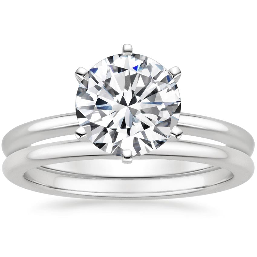 Platinum Six-Prong Petite Comfort Fit Bridal Set with 1.11 Carat Round Lab Grown Diamond