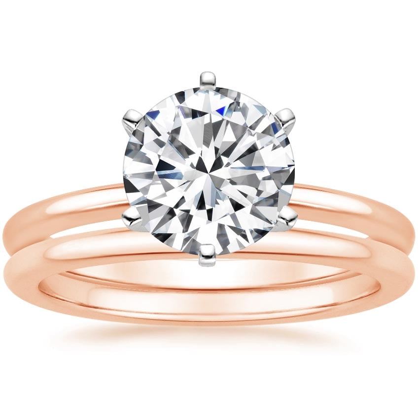 14K Rose Gold Six-Prong Petite Comfort Fit Bridal Set with 1.11 Carat Round Lab Grown Diamond