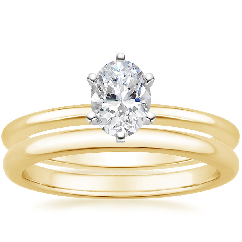 18K Yellow Gold Six-Prong Petite Comfort Fit Ring with 2mm Comfort Fit Wedding Ring