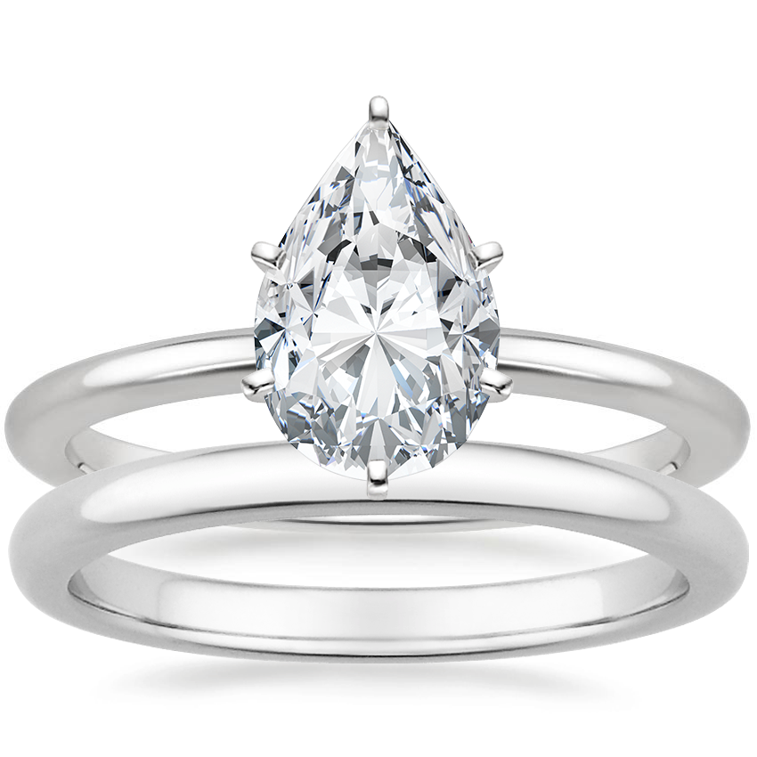 18K White Gold Six-Prong Petite Comfort Fit Ring with 2mm Comfort Fit Wedding Ring
