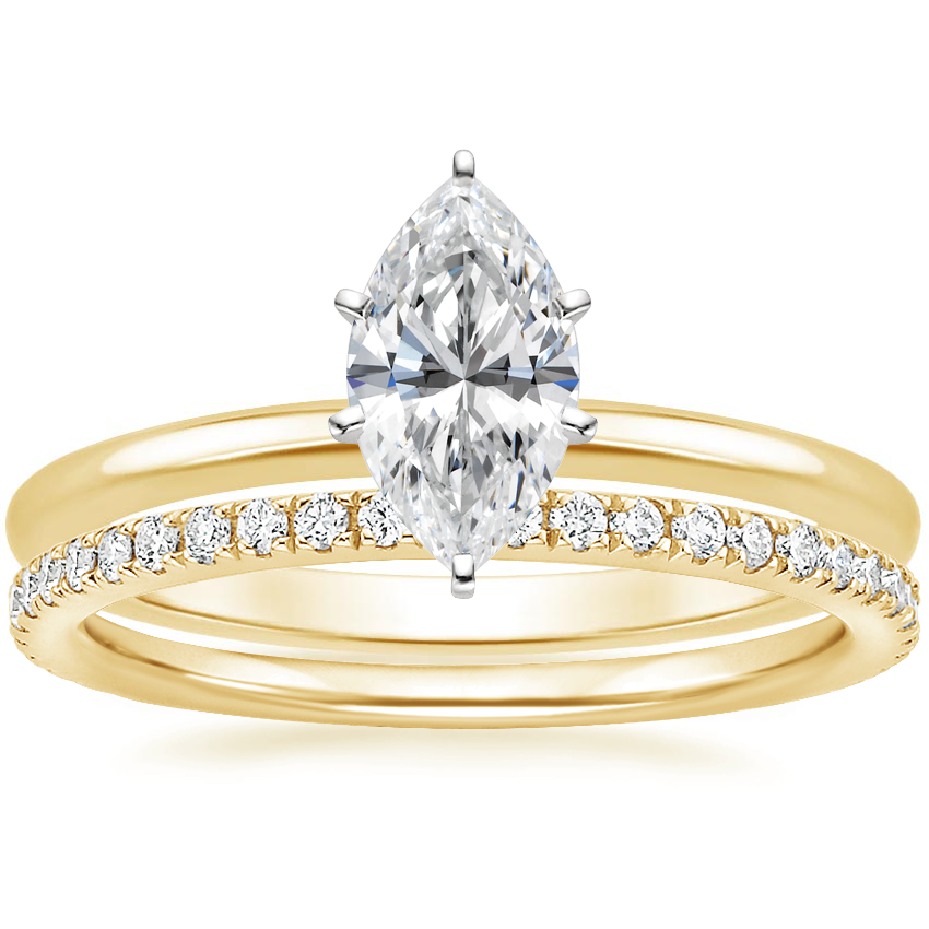 Six-Prong Petite Comfort Fit Ring with Luxe Ballad Diamond Ring (1/4 ct. tw.) in 18K Yellow Gold