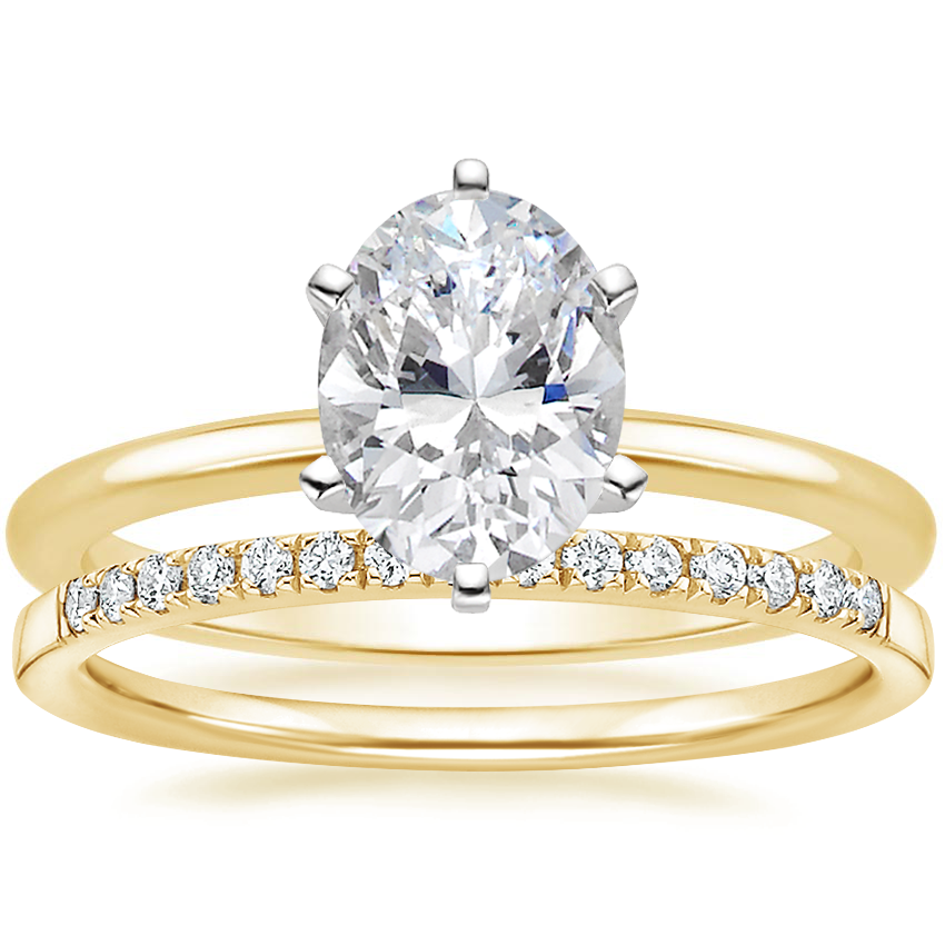 18K Yellow Gold Six-Prong Petite Comfort Fit Ring with Petite Ballad Diamond Ring (1/10 ct. tw.)