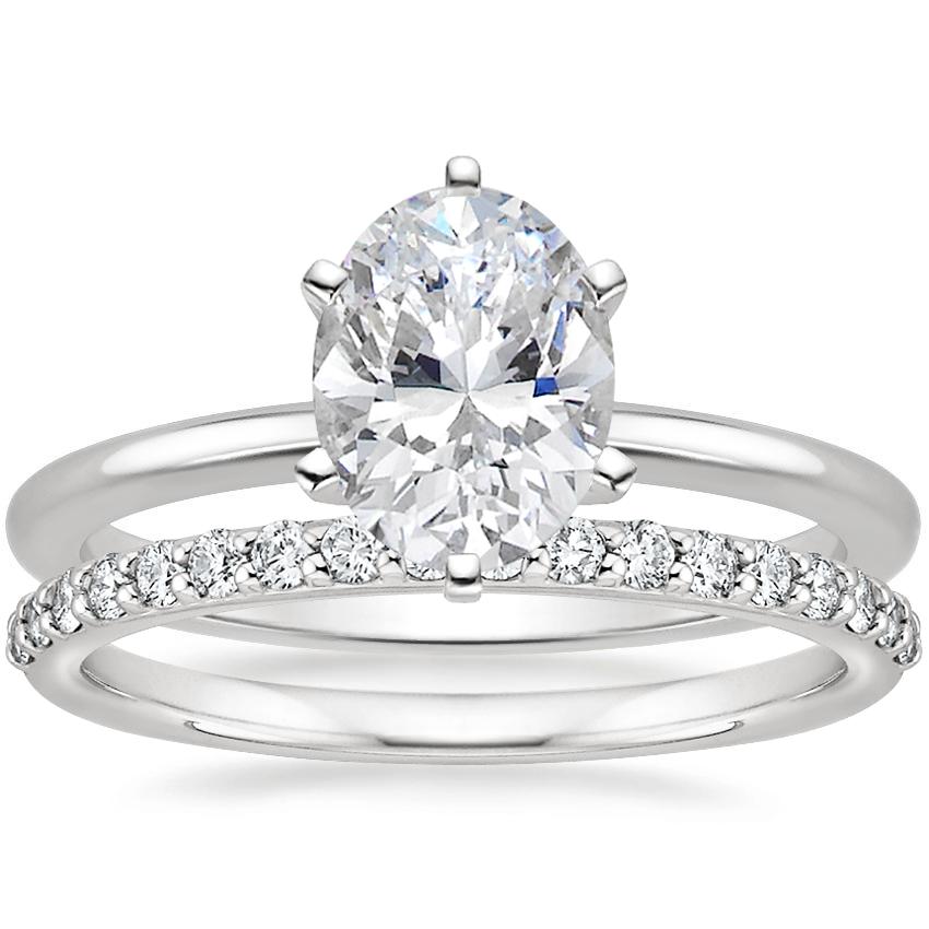 18K White Gold Six-Prong Petite Comfort Fit Ring with Petite Shared Prong Diamond Ring (1/4 ct. tw.)