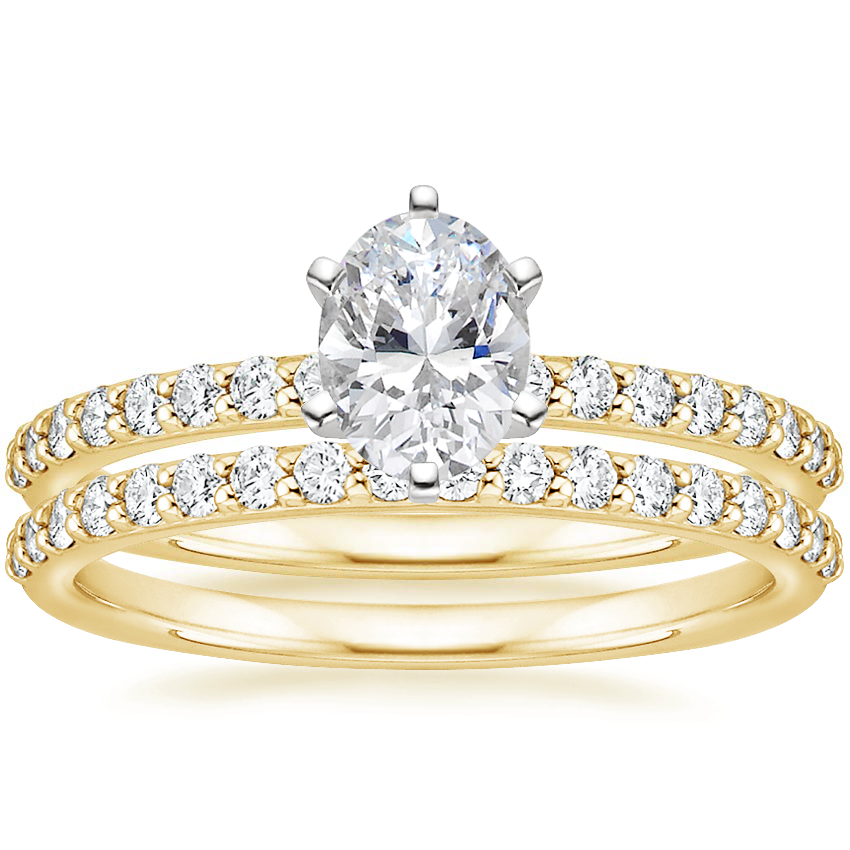 18K Yellow Gold Six Prong Petite Shared Prong Diamond Bridal Set