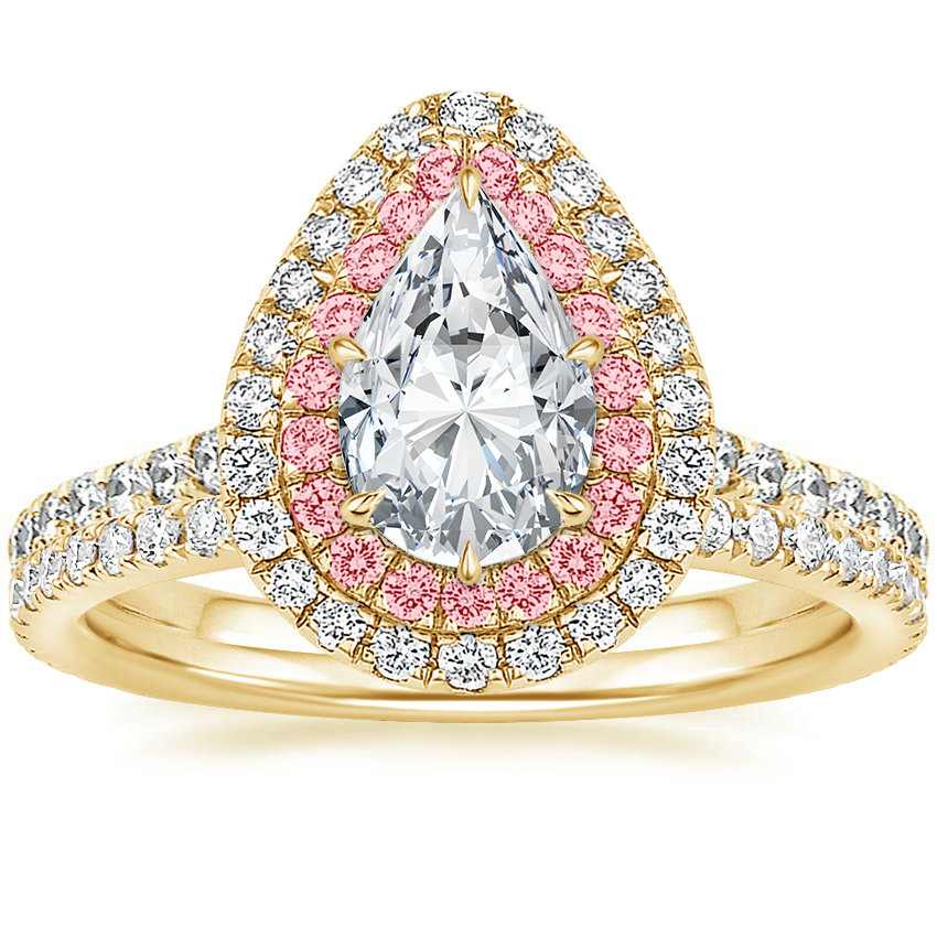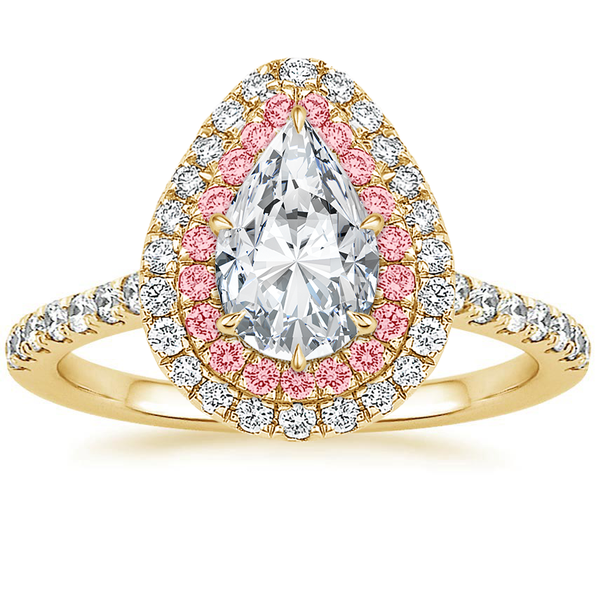 18K Yellow Gold Soleil Diamond Ring with Pink Lab Diamond Accents (1/2 ct. tw.) with Luxe Ballad Diamond Ring (1/4 ct. tw.)